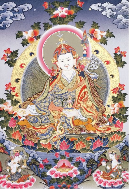 不难看出唐卡画面是一个有机整体,不能光是孤零零地放上一些神灵人物,还需要一些细节将他们联系起来。