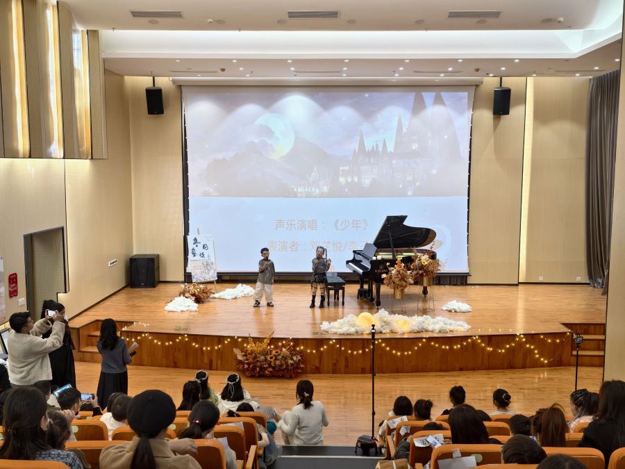 音乐会在师生合奏的《萱草花》中拉开帷幕。随后一个个充满热情和朝气的小乐手陆续登场,指尖在琴键、琴弦上灵动跳跃,欢快激昂的旋律燃动全场气氛,现场响起阵阵热烈的掌声,冬日的寒冷被浓浓的艺术暖意驱散。