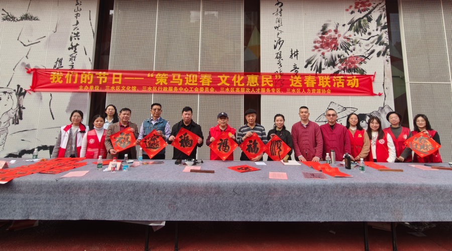 2026年马年春节即将到来之际,为弘扬中华优秀传统文化,营造喜乐祥和的节日氛围,丰富居民群众精神文化生活,三水区文化馆举办多场“策马迎春 文化惠民”送春联公益惠民活动,走进三水区各镇街及肇庆莲花镇,把美好的新春祝福送到千家万户,为居民群众送上一道道年味十足的文化大餐。